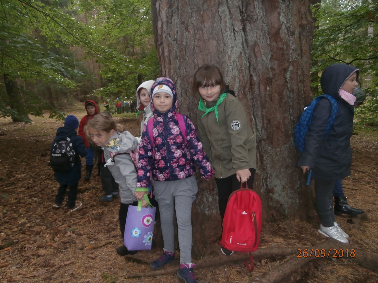Wraz z klasą 3a i 3b wybraliśmy się na wycieczkę do Nadleśnictwa „Leśny Dwór” w Łysomiczkach. Pod opieką leśnika, pani Ani, przeżyliśmy wspaniałą lekcję przyrody na świeżym powietrzu. Utrwaliliśmy sobie informacje i wiadomości o lesie. Podczas spaceru rozpoznawaliśmy drzewa liściaste i iglaste, utrwalaliśmy nazwy i gatunki zwierząt mieszkających w lesie oraz warstwową budowę lasu. Dowiedzieliśmy się wielu ciekawostek o zwierzętach żyjących w tym lesie. Poznaliśmy największą atrakcją jednej ze ścieżek - podziemne przejście dla płazów. Wnikliwie obserwowaliśmy las i zachodzące w nim jesienne zmiany. Wizytę w nadleśnictwie zakończyliśmy ogniskiem i wspólnym pieczeniem kiełbasek. Wróciliśmy zmęczenie, ale pełni wrażeń.